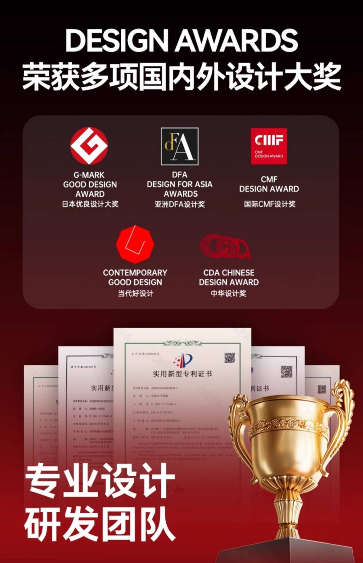 核心优势:作为新兴设计公司,聚焦消费电子领域CMF设计,通过色彩、材料与工艺创新提升产品溢价能力,擅长将传统文化元素融入现代产品设计。