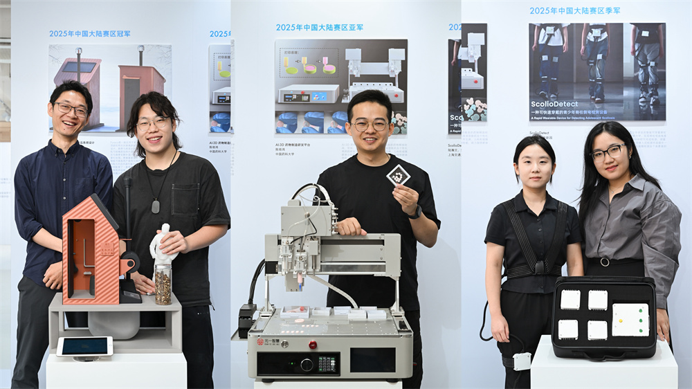 来自中国药科大学陈培鸿的作品AI-3D药物制造研发平台则夺得亚军,该设计通过提供精准的药物释放时间、空间、速度与剂量控制,能够解决儿童、老人需手工分剂量用药、罕见病人群按需制药成本高等痛点,实现个性化精准用药,并且其AI打印技术还可以为药物制作触觉标签,减轻视障群体用药困难;来自上海交通大学陆瀚文、宋新园的团队作品ScolioDetect获得季军,这是一种可快速穿戴的青少年脊柱侧弯监测设备,采用动态步态分析方案,可快速完成脊柱弯曲角度与形态的高精度测量,将脊柱侧弯检测从依赖专业操作的复杂检查,转变为可在校园等场景轻松实施的简单流程,使检测普及成为可能。