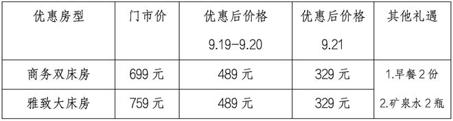 办理入住时,出示9月19日-9月21日期间有效的周杰伦济南演唱会门票凭证(纸质票或电子票根)。