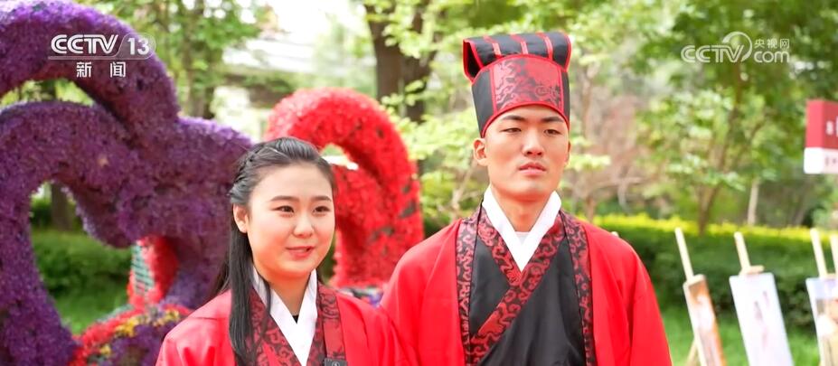 在江西贵溪、山东巨野等地,五月份组织了多场主题为“不要彩礼要幸福”的集体婚礼,倡导新人们选择简约的婚礼仪式。在河北省河间市的集体婚礼现场,红毯艳艳、丝竹袅袅,新人们身着传统礼服,在证婚人、主婚人的见证下,按照周制汉婚的传统仪式开启他们爱的旅程。